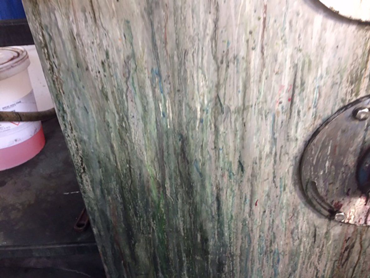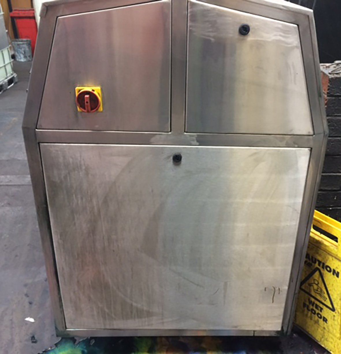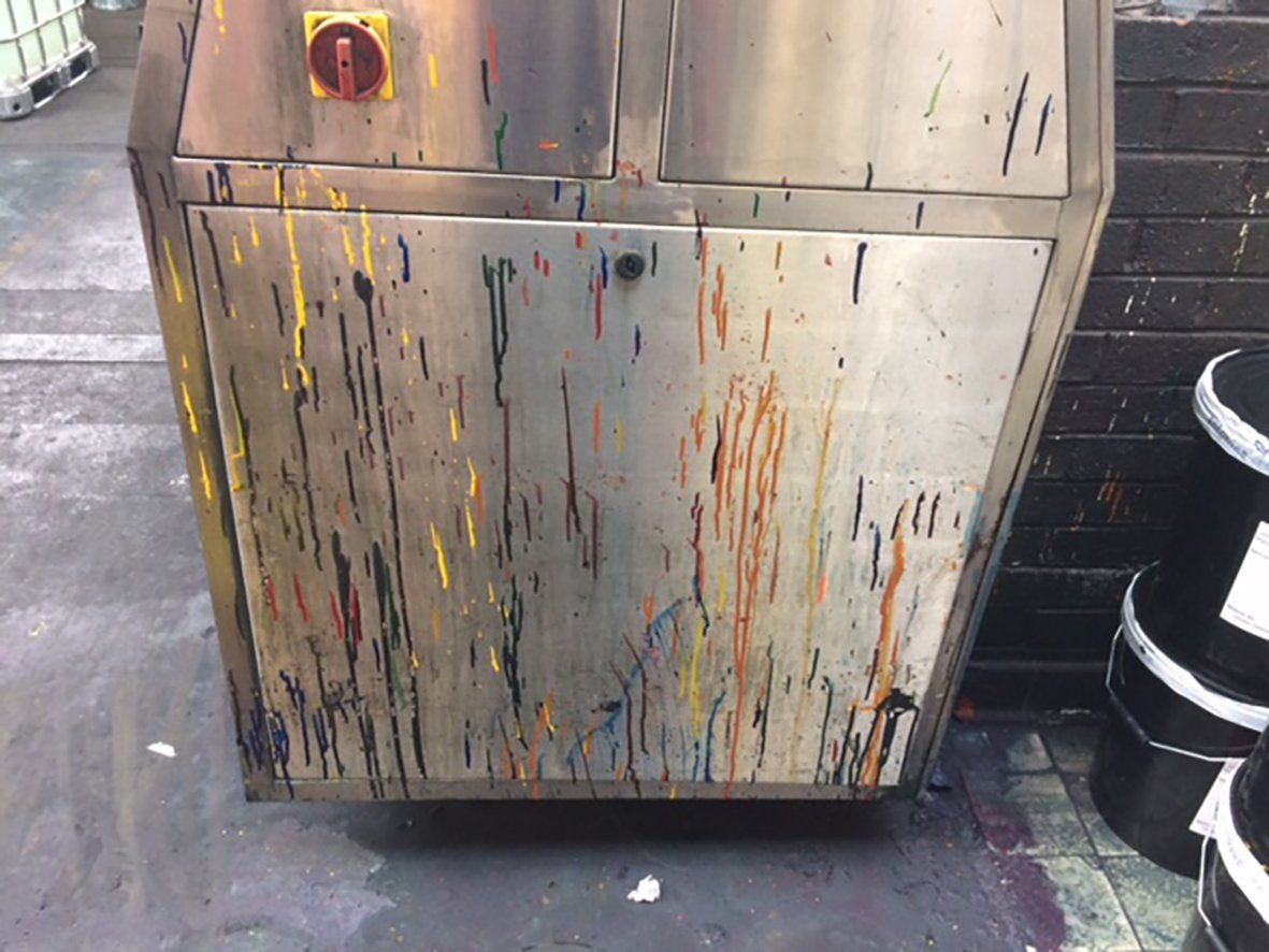 Print Wizard diluted to 10% was used to clean this retro plate washing machine, neglected for some time. Ink had dried on and set solid.