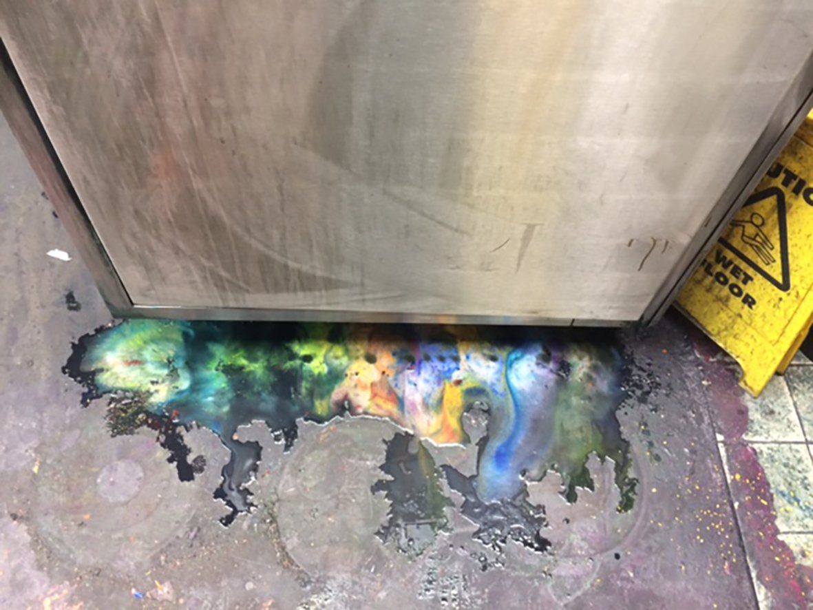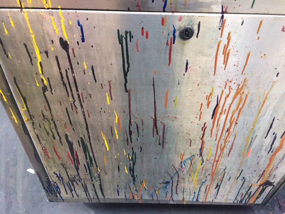 Using wet cloths to remove the dissolved ink, the machine was visually revived to a high standard.