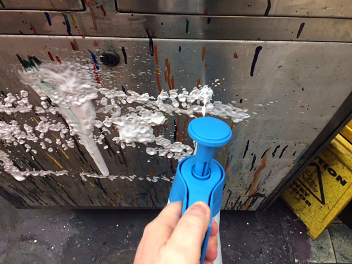 Applying Print Wizard with a foam spray, the ink was quickly and safely removed.